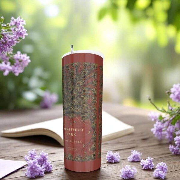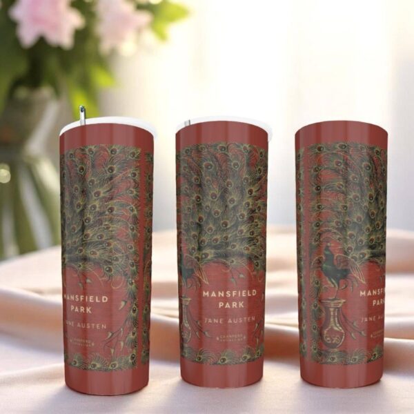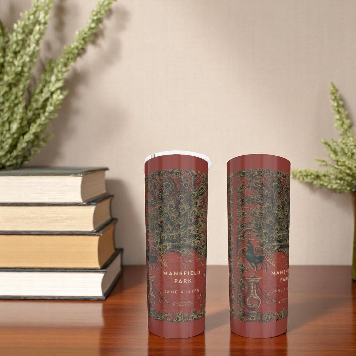 This 20 ounce stainless steel tumbler is illustrated with the cover of Mansfield Park from the Cranford collection. A beautiful tumbler that will keep your beverage cold or hot for hours. The surface of the tumbler is shiny, with a stainless steel straw. Product Size is 2.3*2.7*8.6 inches.